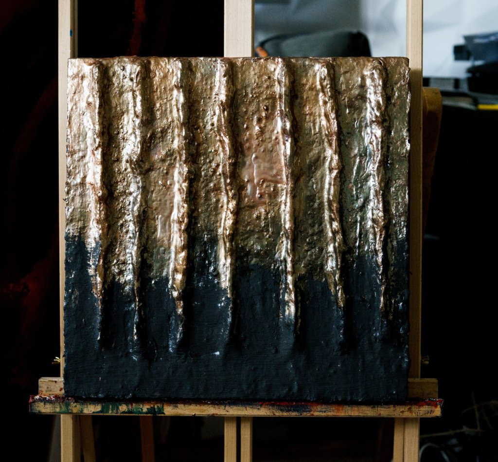 40x40cm mixed media, 3kg, wall decoration, gold and black